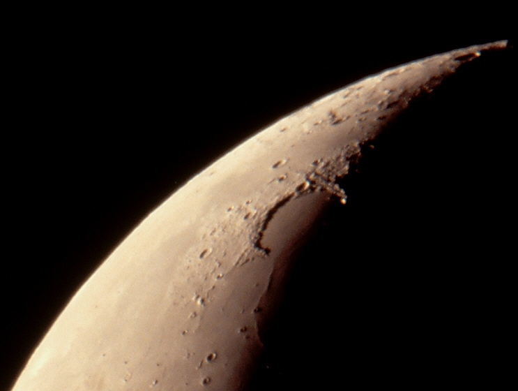 Sinus Iridium (Regenbogenbucht, Mitte), Sinus Roris (Bucht des Taues, unten links)