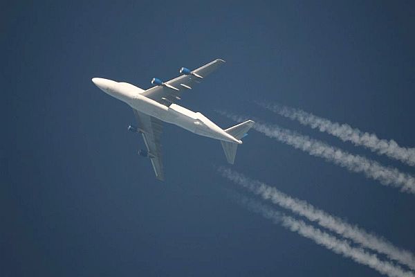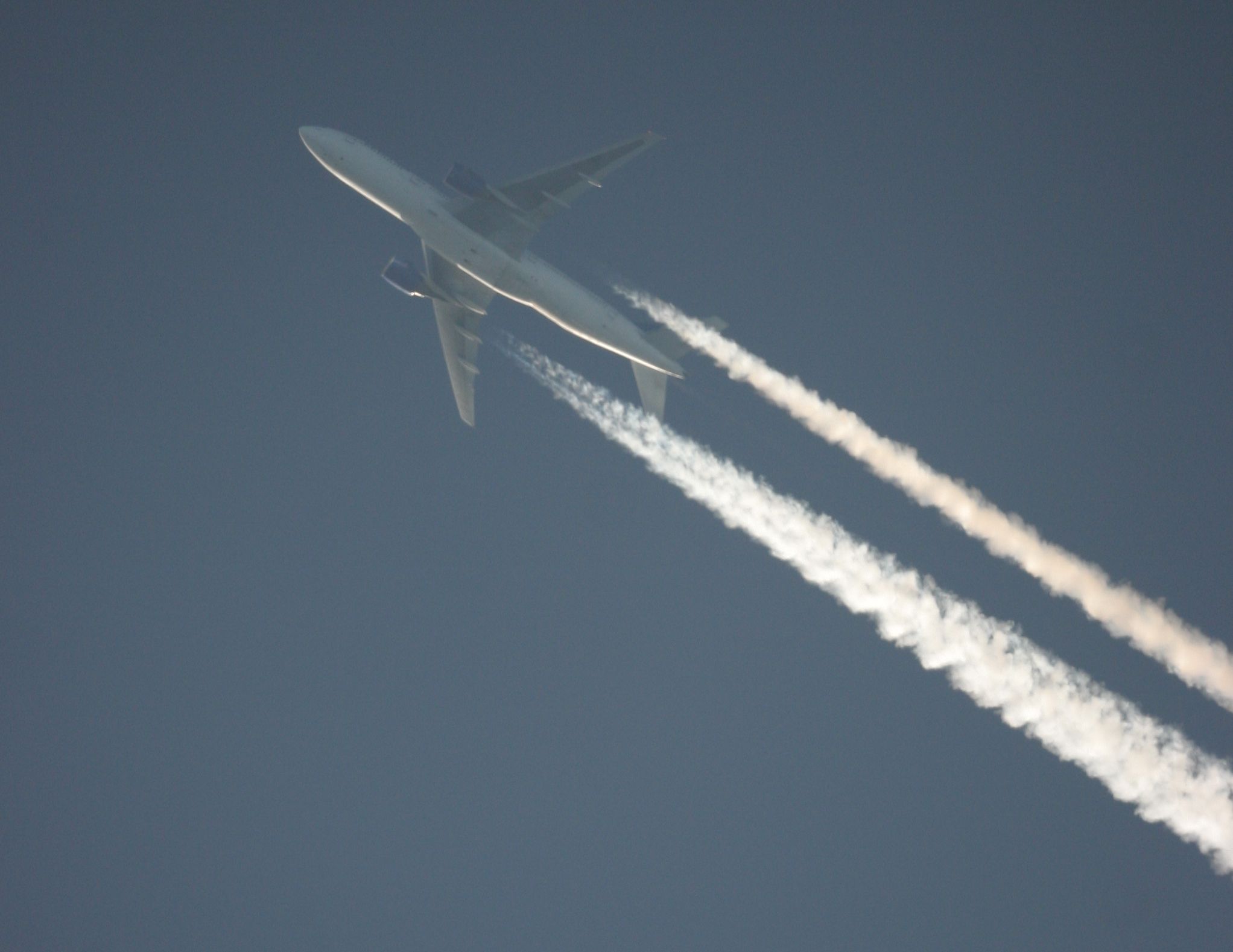 Kondensstreifen, wie diese Boeing 747 am 7.5.2008 (ein strahlender Sonnentag