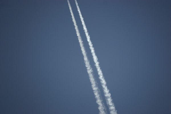 Behauptung der Verschwörungstheoretiker: Diese Bilder sind angeblich voller "Chemtrails" Die beiden oberen Flugzeuge versprühen angeblich Gift, das untere nicht. Im Hintergrund seien verwehte ältere "Chemtrails" zu sehen. Erklärung: Die Flugzeuge fliegen aller Wahrscheinlichkeit nach in unterschiedlichen Höhen (ca.10-13km). Durch unterschiedliche Temperaturen und Luftfeuchtigkeiten lösen sich manche Kondensstreifen schneller auf als andere.