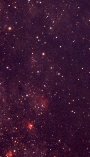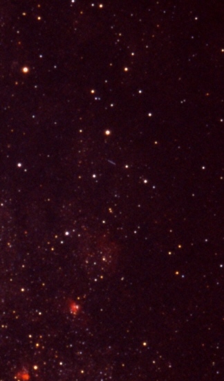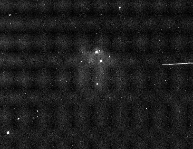 Am 10.11.2005 fotografierte ich wieder mit meinem 10"-Newton, f=1300mm, aber diesmal einer Starlight X Press MX7C-Kamera M 78. Als ich gerade aufhören wollte, flog mir um 2:58 MEZ von rechts wieder ein Objekt durchs Bild: